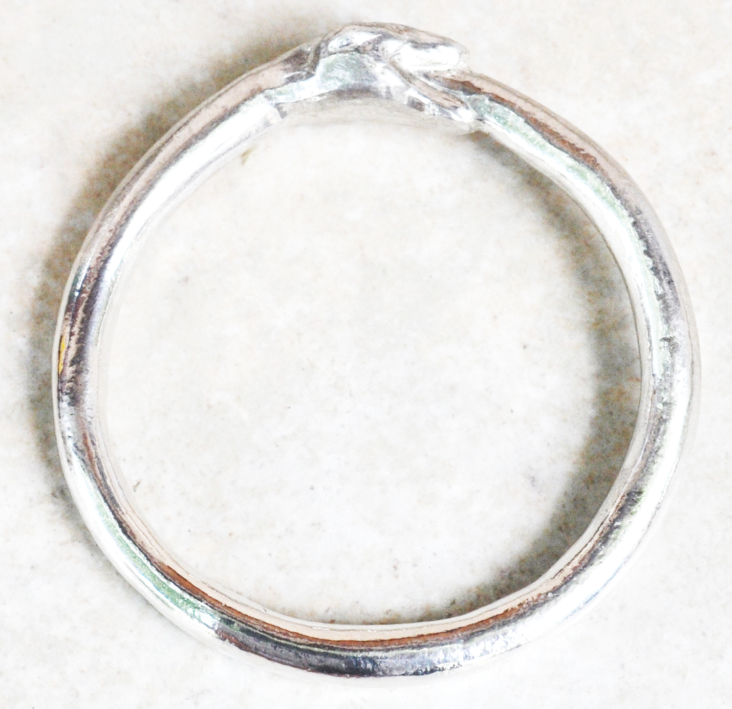 Single Wrap Ouroboros cast in seamless Sterling Silver in your Bespoke Size with no solder to irritate delicate skin. Head is formed and polished for your Partner’s enjoyment. Shown in Sterling Silver., 1.75″ or 66mm. Available in 14k Yellow Gold; Request Quote for an up to the minute price. Please provide your measurement in the Notes Section in the Payment Box. Please allow three weeks from delivery from time order is placed.
